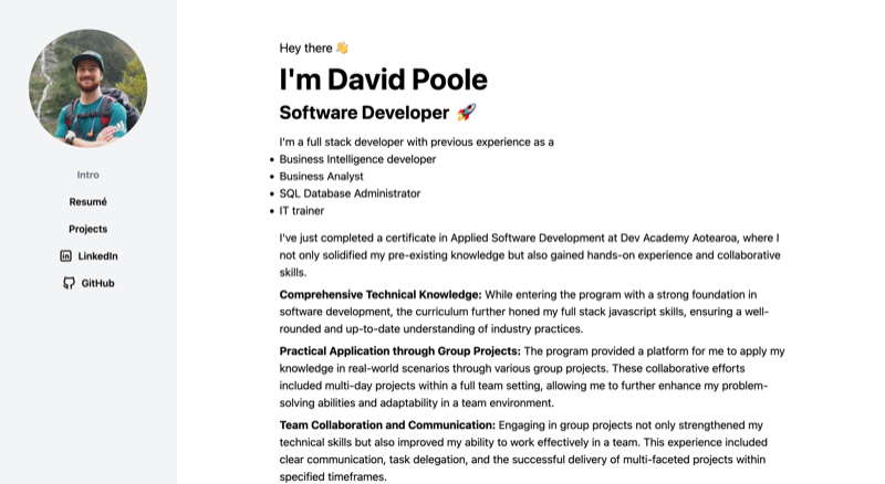 I had a portfolio but wanted a better way to deploy it and came across Deno Deploy, so I ended up learning how to use Deno instead of Node.js, and they also recommended Fresh as the front end which uses page routing and islands architecture so it was interesting to learn some new techniques.
