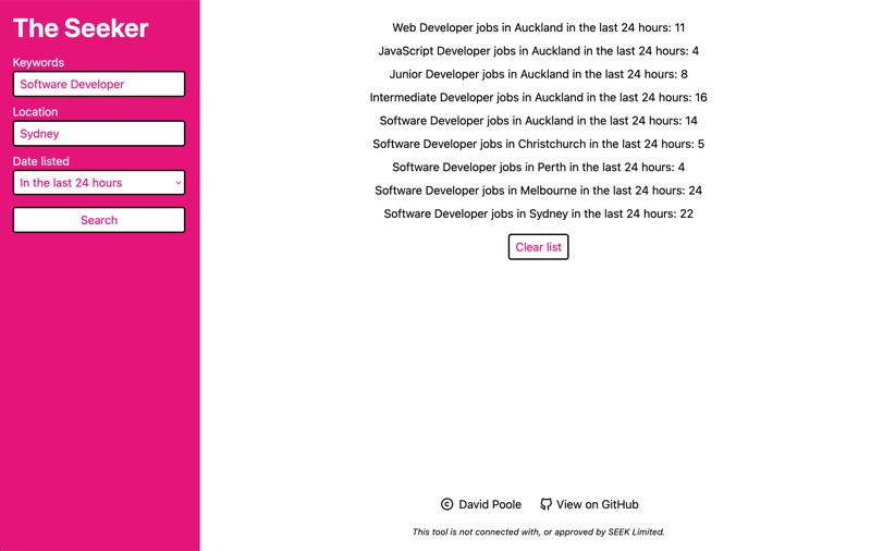 Scrape Seek for jobs, allowing users to quickly view a list of search terms and compare the number of jobs currently listed.